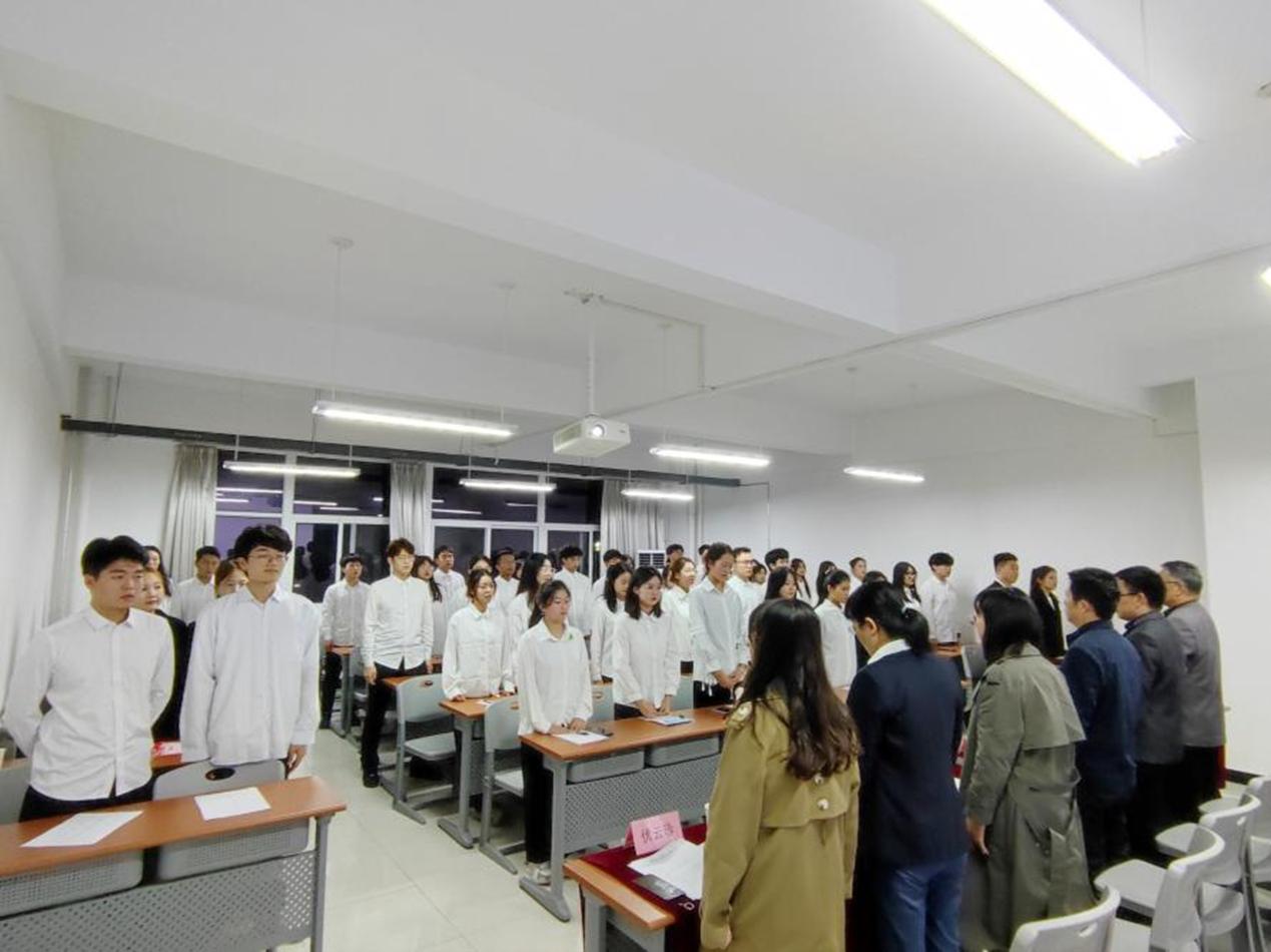 第十八届院学生会主席杨心悦在发言中表示,将不负老师与同学们的支持与期望,强化学生会内部建设,完善外部形象,大力提高学生会工作质量,注入新活力,推动我院不断向前、向上、向好发展!